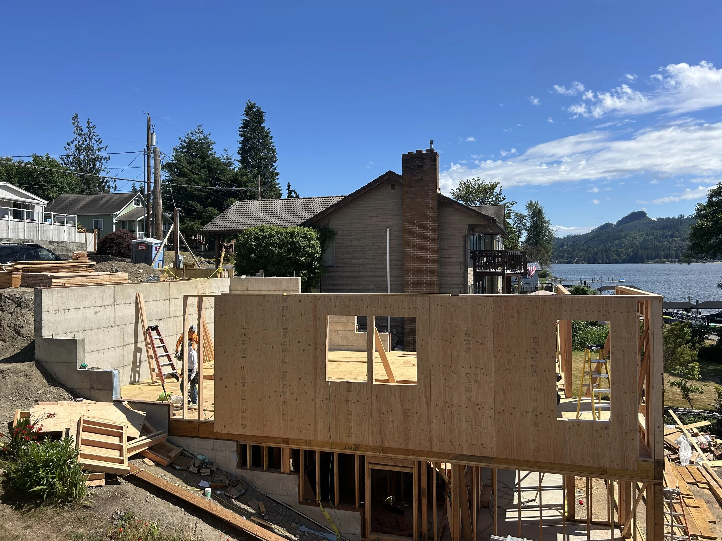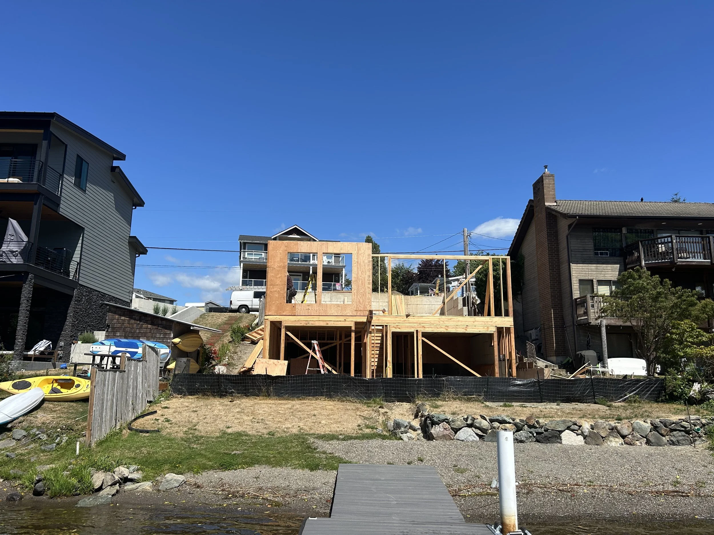 Excitement is building as framing kicks off for a stunning 4 level residence on Big Lake, Washington, marking a major milestone in this modern home’s journey. Designed by the visionary team at Apex Contracting, this project is crafted for a challenging steep hillside lot pinned between two existing homes, with a focus on breathtaking window views and innovative structural solutions. Alpine Engineering’s expertise shines through with a robust lateral design and a unique concrete slab over framing for a street-level garage elevated within the home. Join us as we dive into the progress of this stylish, forward-thinking residence that’s taking shape!